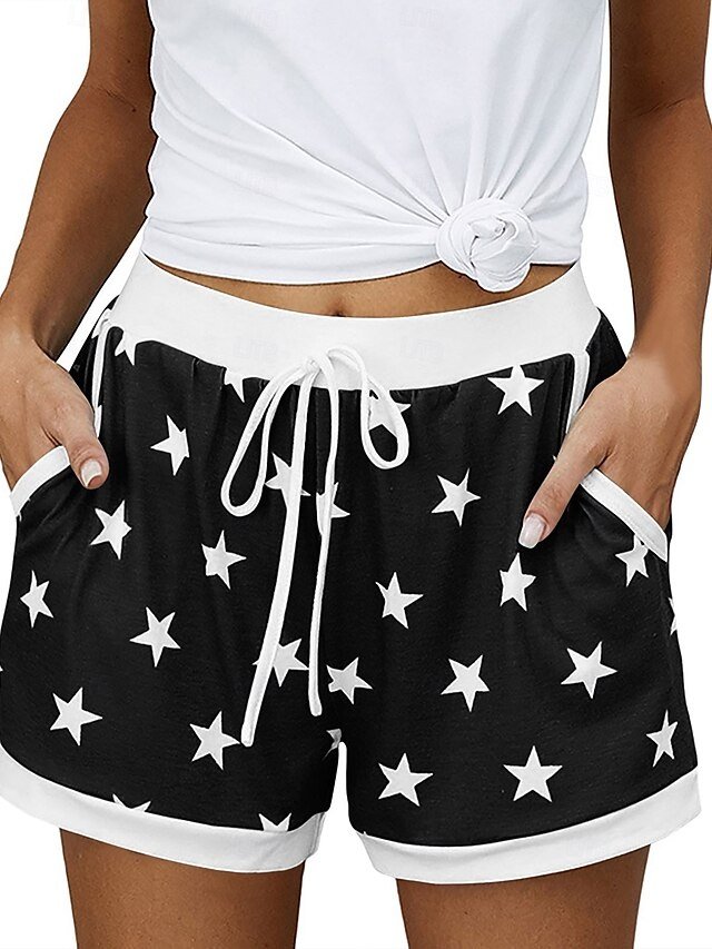Experience the perfect fusion of comfort and elegance with these Athleisure Baggy Star Medium Waist Pocket Shorts.