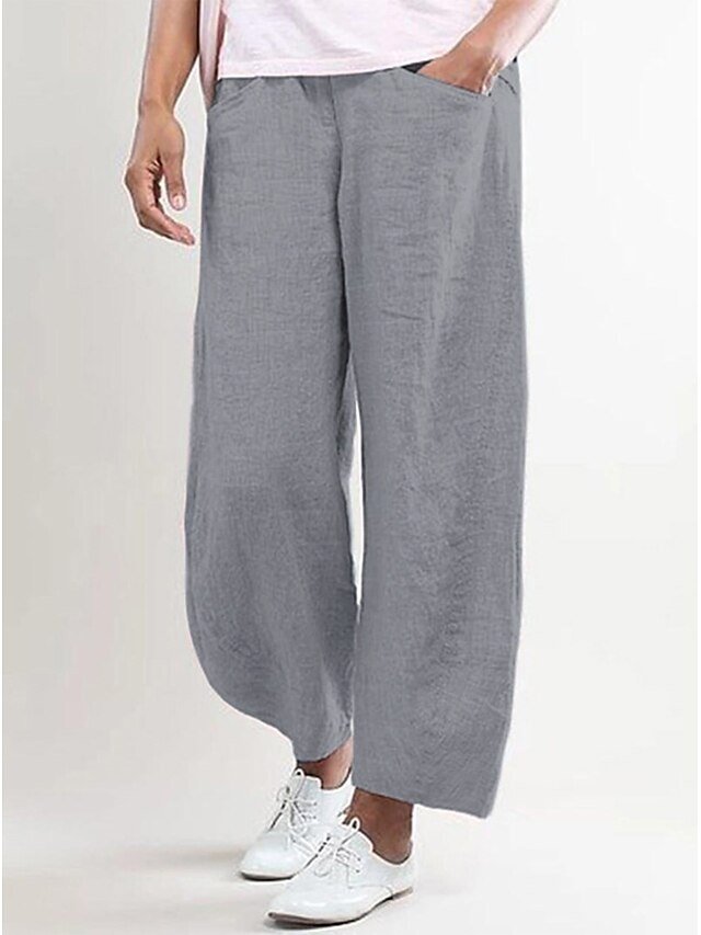 Embrace the perfect fusion of comfort and elegance with our Basic Casual Baggy Mid Waist Cotton Linen Trousers. Crafted for the modern woman who values both style and relaxation, these trousers are essential for your sophisticated lounge wardrobe.