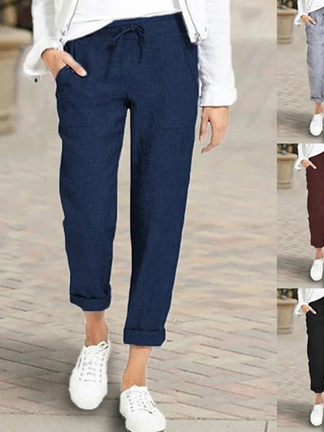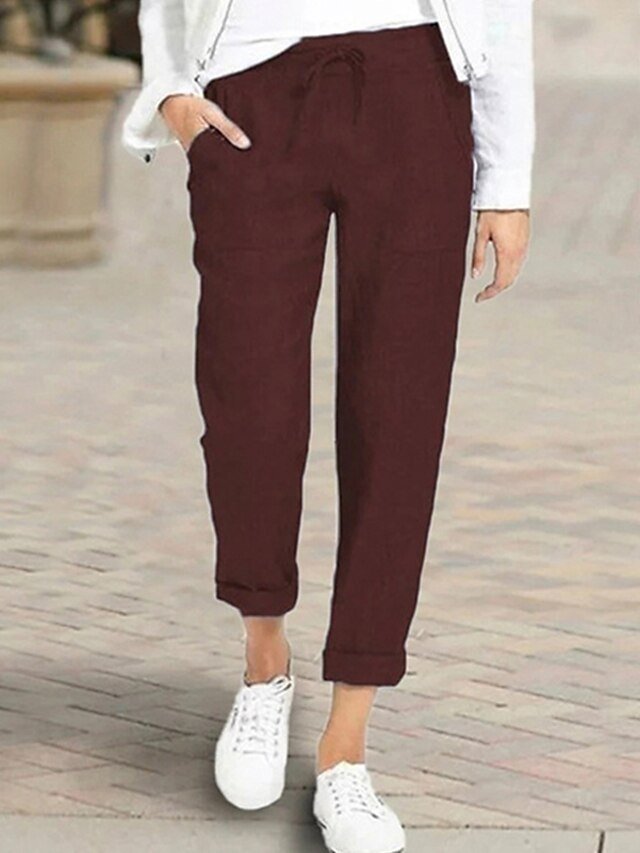 Basic Loose Solid Mid Waist Ankle-Length Capri Trousers