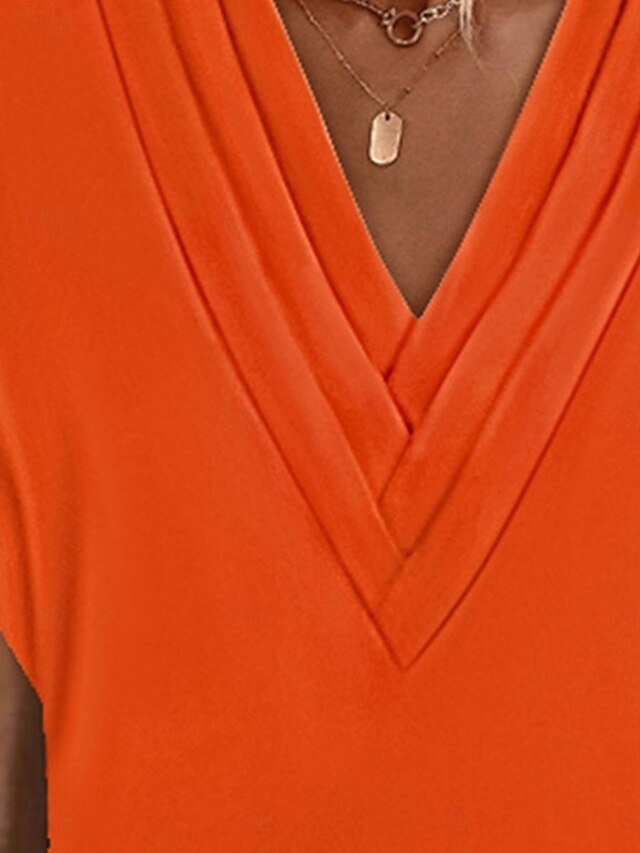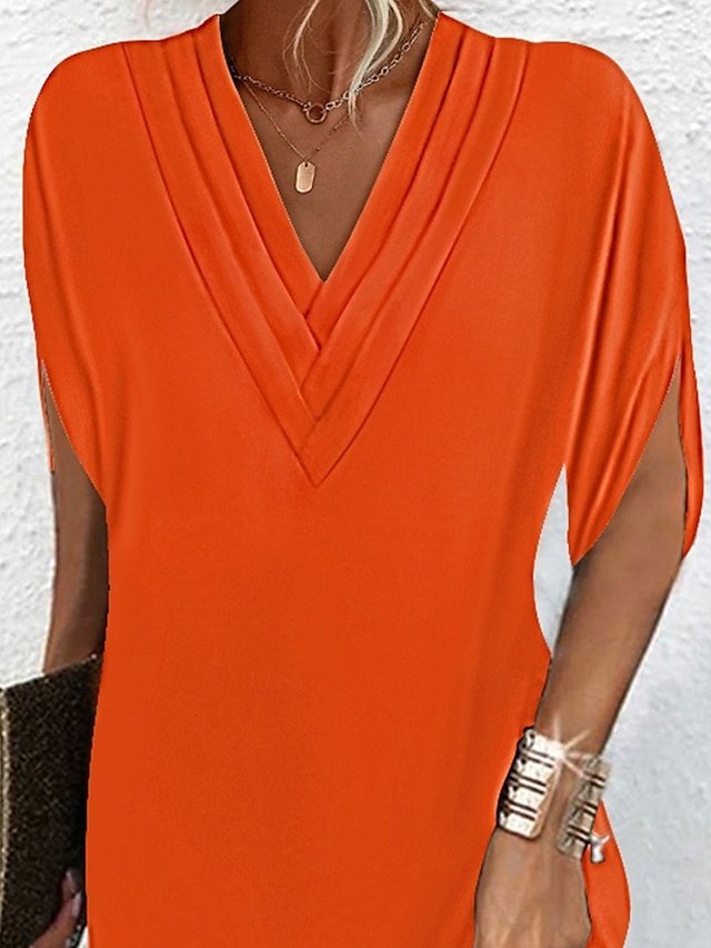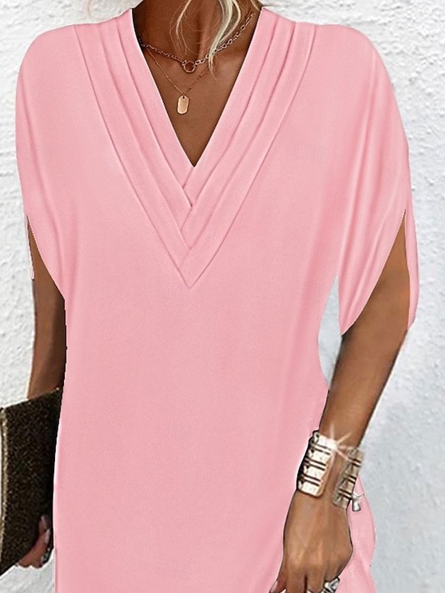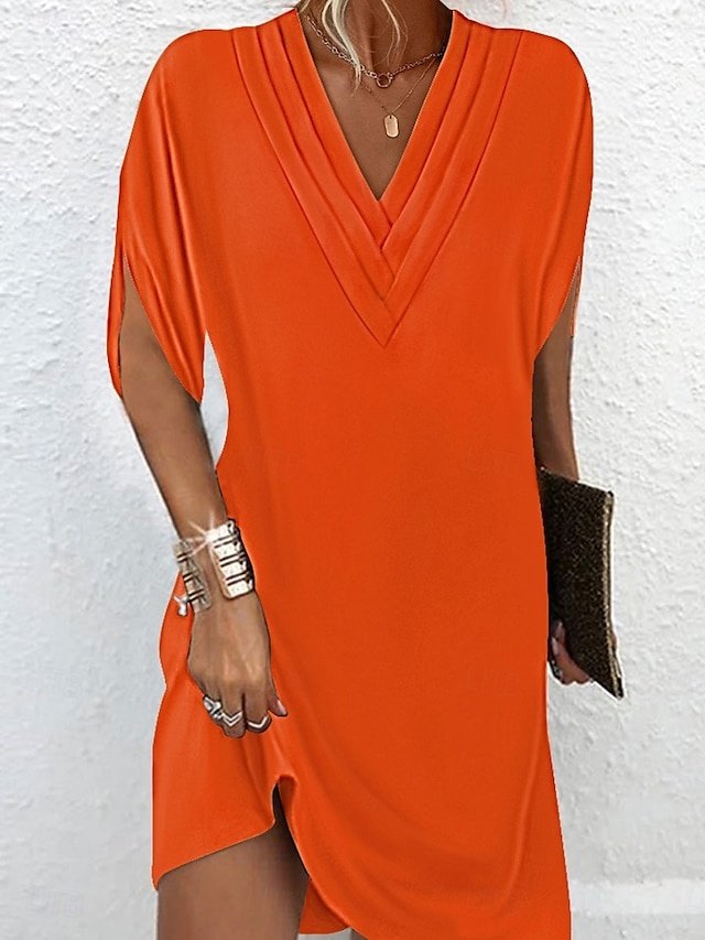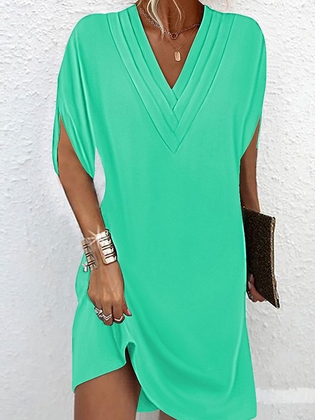 Basic Regular Fit Plain V Neck Batwing Short Sleeve Mini Dress
