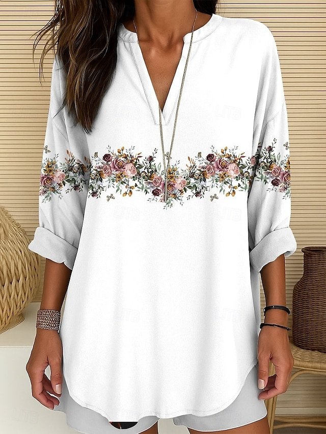 Step into a world of vibrant elegance with our Basic Regular Floral Round Neck Long Sleeve Top, where classic charm meets modern sophistication. This exquisite piece is your perfect companion for those laid-back holiday weekends and cooler seasons, offering both warmth and style in hues of white, pink, red, navy blue, and blue.