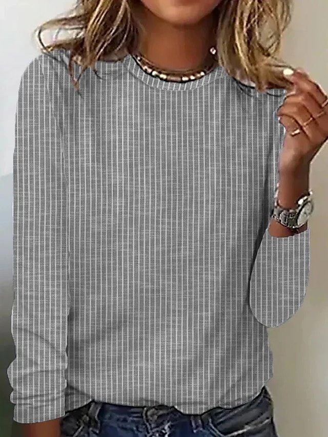 Embrace elegance and effortless style with our Basic Regular Striped Round Neck Long Sleeve Top, a versatile addition to your wardrobe perfect for daily wear and weekend outings. This top combines comfort with a touch of sophistication, allowing you to exude confidence no matter the occasion.