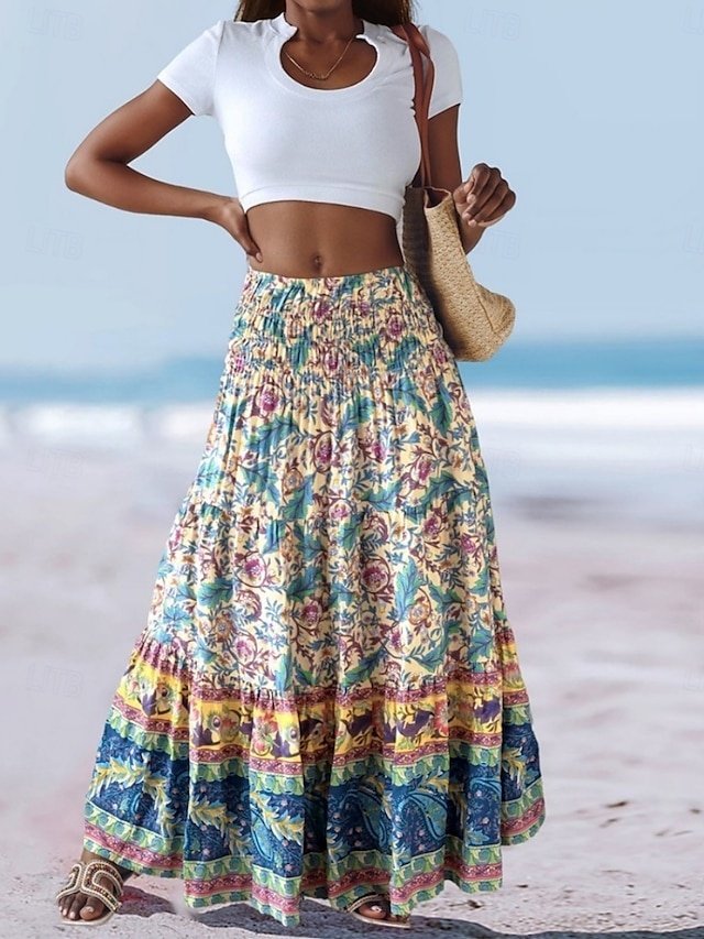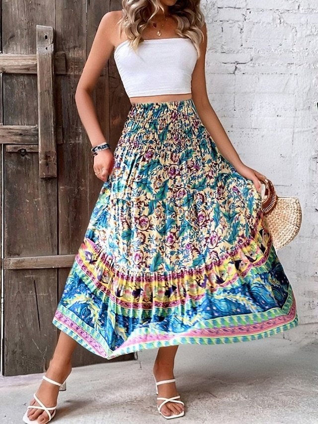 Step into a world of vibrant elegance with our Bohemia A-Line Ethnic Maxi Skirt. Perfect for those who adore a touch of bohemian flair, this skirt is crafted to elevate your casual summer outings with its timeless design and luxurious feel.