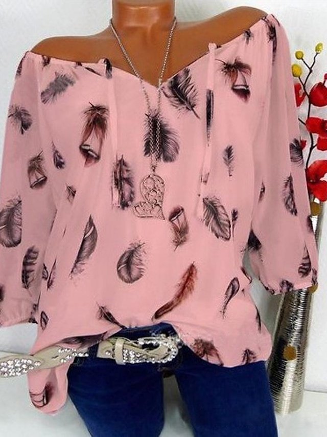 Embrace the spirit of bohemian elegance with this exquisite blouse, designed to whisk you away to sunlit beaches and vibrant festivals. The effortless flow of the fabric combined with the ethereal feather print evokes a sense of freedom and breezy sophistication that is perfect for spring and summer escapades.