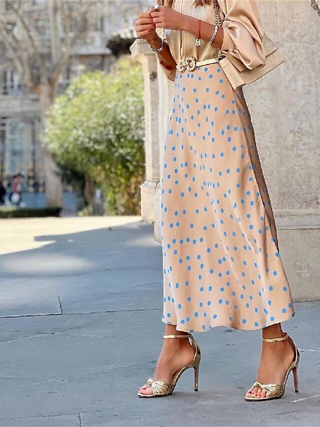 Discover the boho A-line floral geometric high waist maxi skirt in yellow khaki. Perfect for summer street style with a casual vibe.
