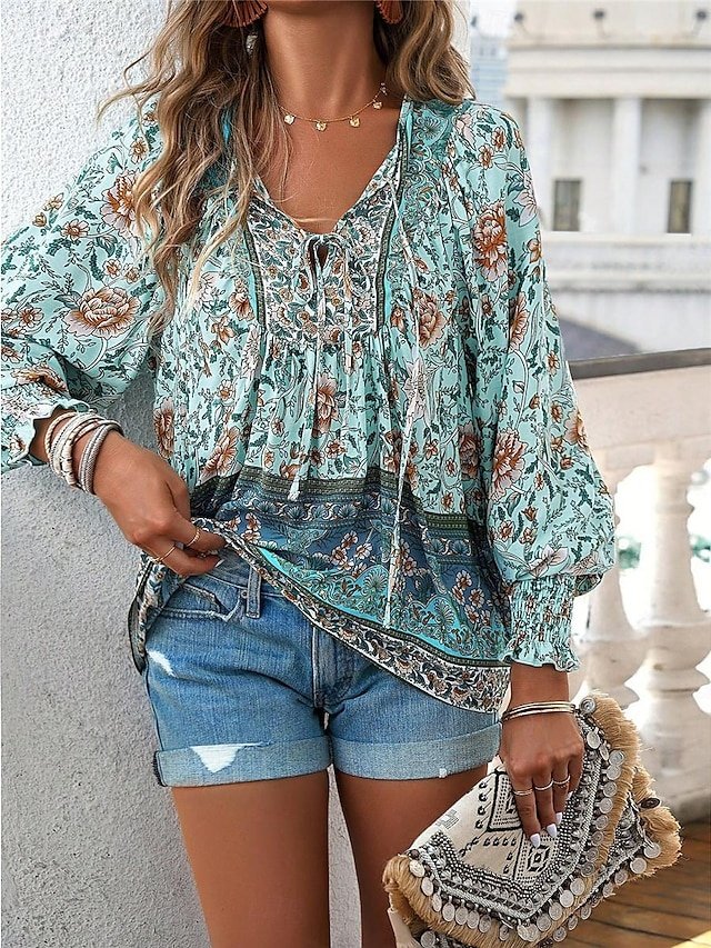 Embrace the essence of effortless chic with our boho casual floral lace-up top, perfect for the modern woman who cherishes elegance intertwined with simplicity. Designed for those who seek the allure of bohemian fashion, this top is an exquisite addition to your summer wardrobe, ideal for beach vacations or leisurely days in the sun.