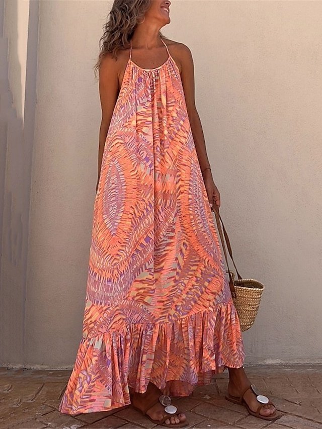 3Cstrong3EUnleash your inner bohemian goddess3C/strong3E with our stunning Boho Chic Maxi Dress. This ethereal piece is crafted to transport you to dreamy summer escapes with its exquisite leaf print and elegant ruffle detailing. Perfect for casual daily wear or a luxurious holiday, this backless design captures the essence of carefree elegance.