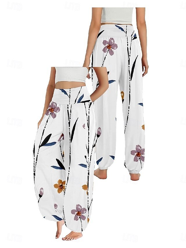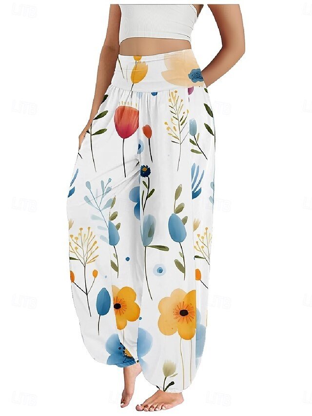Embrace the allure of tropical elegance with our Boho Ethnic High Waist Floral Full Length Wide Leg Trousers. Crafted for the free-spirited woman, these trousers offer a blend of style and comfort – perfect for both city strolls and serene outdoor yoga sessions.