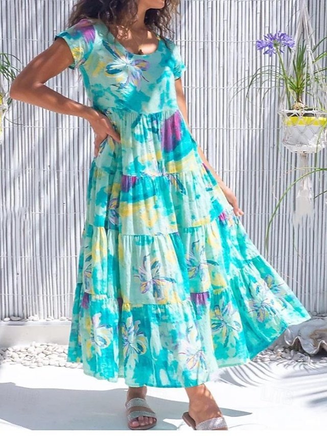 Discover elegance with our Boho Ditsy Floral Maxi Dress. Perfect for home or holiday, featuring a crew neck and short sleeves. Sizes S-3XL.