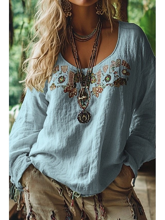 Embrace the bohemian spirit with our exquisite Boho Regular Floral Off Shoulder Long Sleeve Blouse, a perfect blend of retro charm and modern elegance. Designed for the discerning woman who values both comfort and style, this blouse is your ideal companion for both daily wear and holiday adventures.