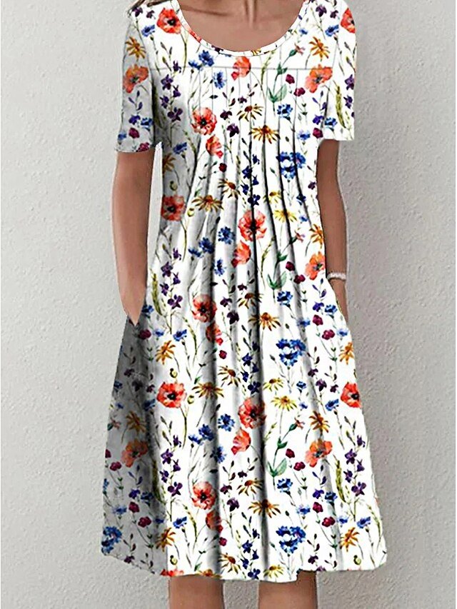 Step into a realm of effortless elegance with our stunning Casual Basic Floral Crew Neck Short Sleeve Midi Dress. Perfect for the discerning woman who values both comfort and style, this dress is your go-to choice for a myriad of occasions, from sunlit vacations to relaxed weekends.