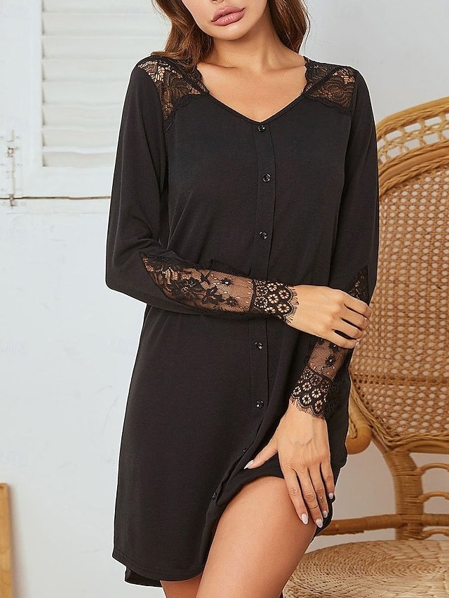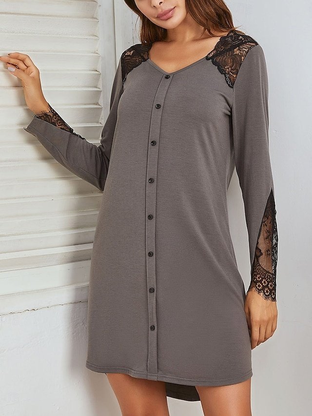 Discover elegance and comfort with our V-neck lace nightgown, perfect for spring and fall nights. Available in black and grey. Shop now!