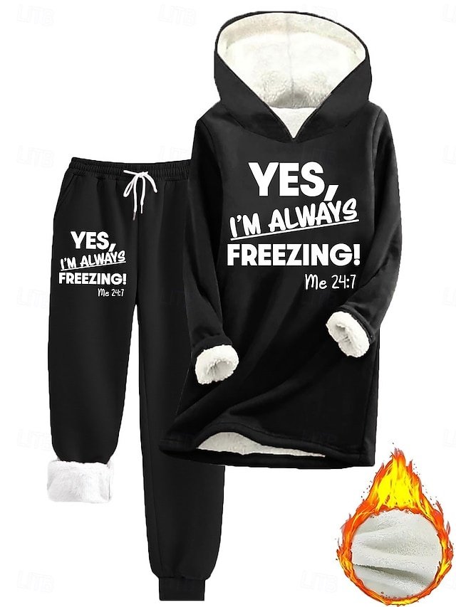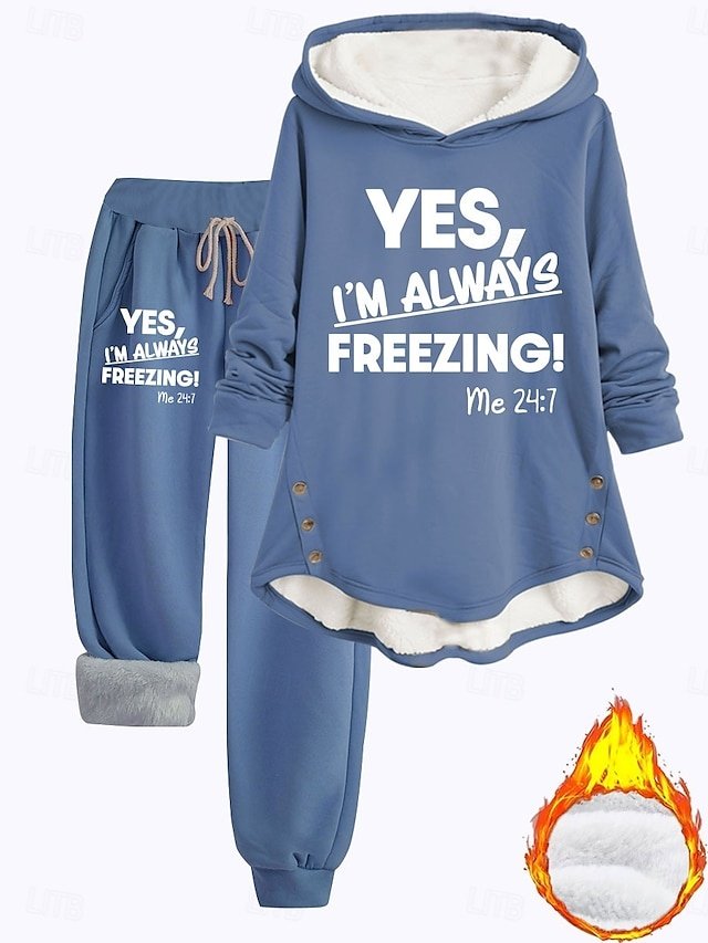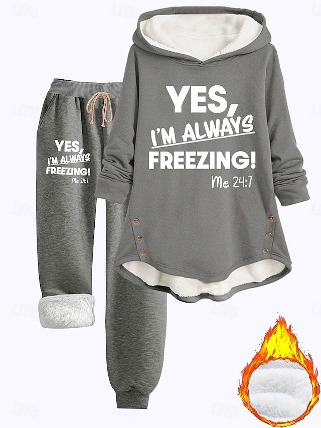 Discover ultimate comfort and style with our cozy phrase print hooded loungewear set, perfect for embracing the chilly weather in elegance.