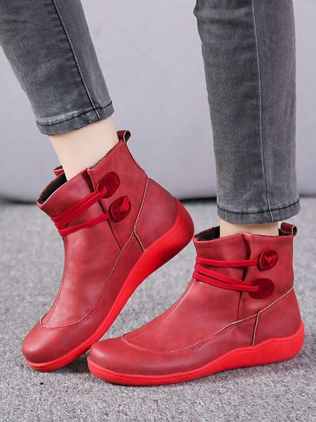Indulge in the epitome of comfort and style with our Women’s Red Casual Ankle Boots. Crafted for the modern woman on-the-go, these boots are your perfect companion for walking, travel, and winter outings. The soft faux leather exterior combined with a warm lining promises both luxury and practicality.