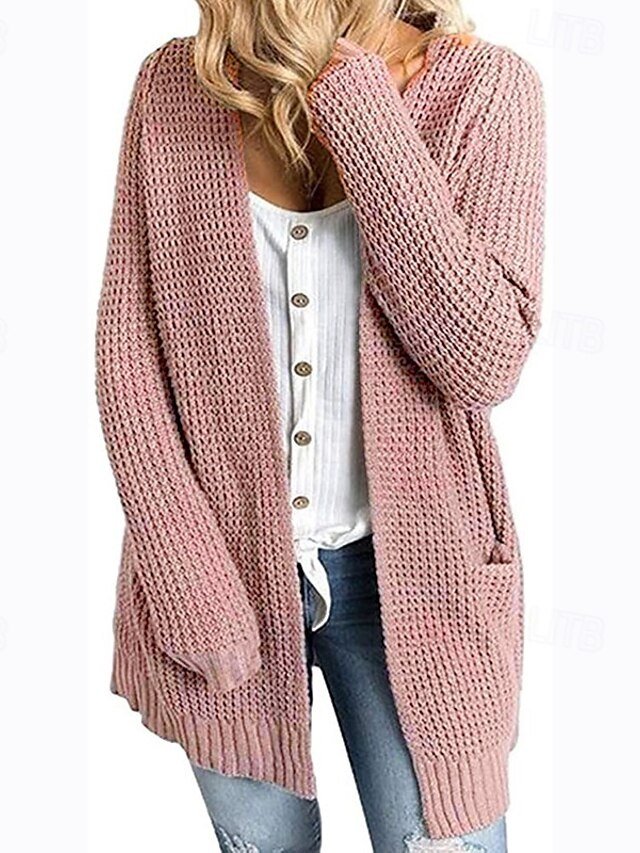 Discover our casual long knitted cardigan with a solid colour design, perfect for fall and winter. Available in black and pink.