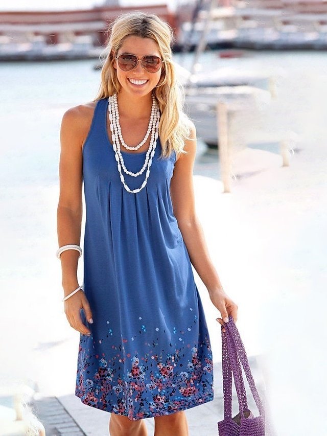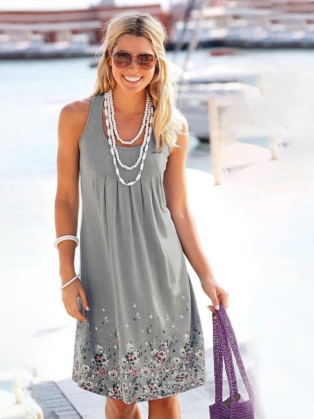 Step into a world where elegance meets effortless style with our Casual Loose Floral Crew Neck Sleeveless Midi Sundress. Perfect for outdoor gatherings or a leisurely stroll in the park during the enchanting days of summer and spring.