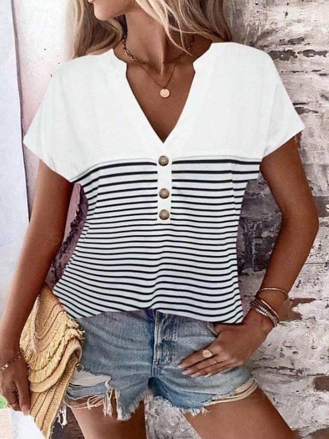 Embrace effortless elegance with our captivating Casual Loose Gradient V-Neck Top, a must-have addition to your summer wardrobe. This exquisite piece seamlessly blends comfort and style, making it perfect for those leisurely days and relaxed outings.