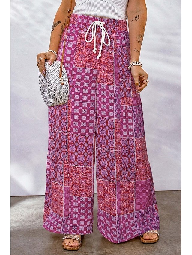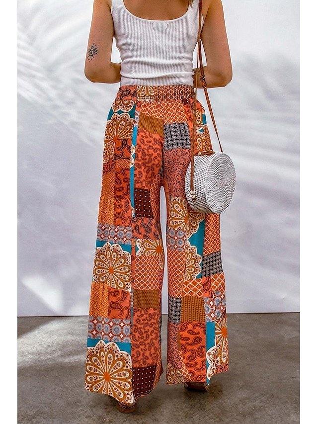 Elevate your casual wardrobe with our exquisite wide leg trousers, designed for the modern woman who values both style and comfort. These luxurious trousers feature a vibrant graphic pattern that exudes contemporary charm, perfect for making a statement wherever you go.