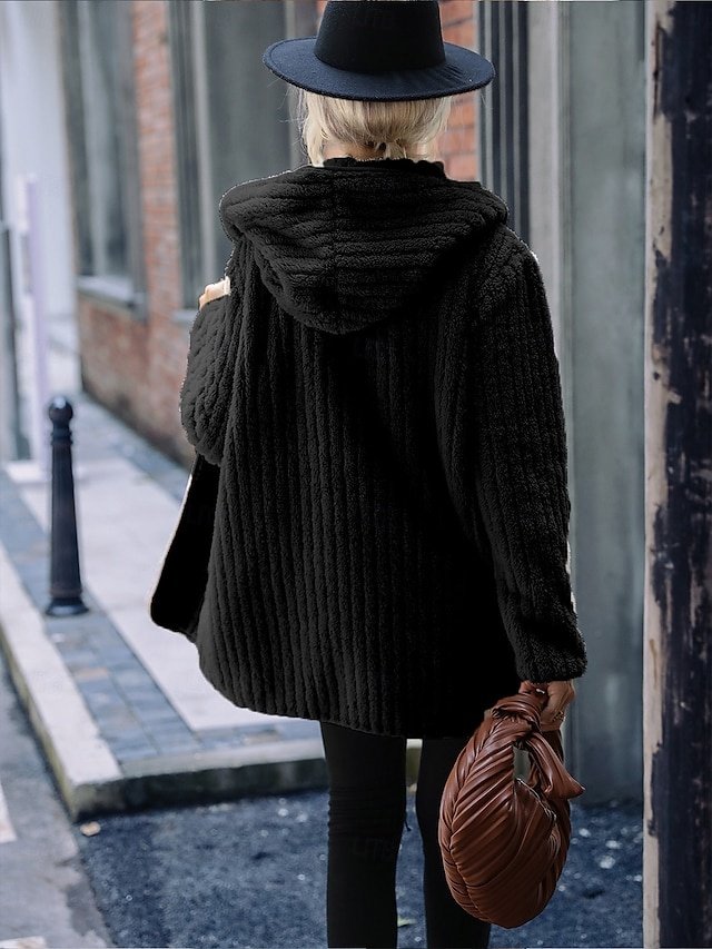 Stay chic and warm with our Casual Loose Plain Sherpa Jacket, perfect for work or leisure. Available in Black, Red, and Gray. Shop now for autumn/winter!