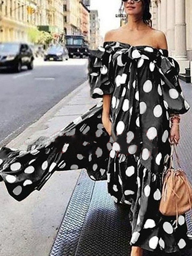 Embrace the essence of effortless elegance with our stunning Casual Loose Polka Dot Off Shoulder Sleeveless Maxi Dress. Designed for the modern woman who appreciates both comfort and style, this dress is perfect for those transitional autumn days and relaxed gatherings.