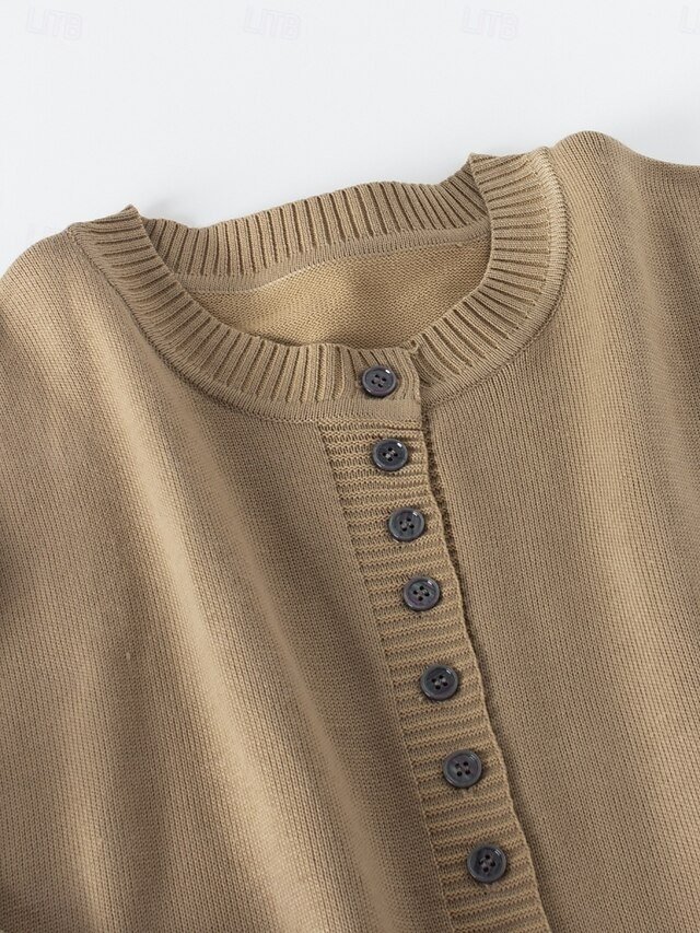 Elevate your wardrobe with this casual loose fit pure colour cardigan, featuring a stand collar and long sleeves for a chic winter style.