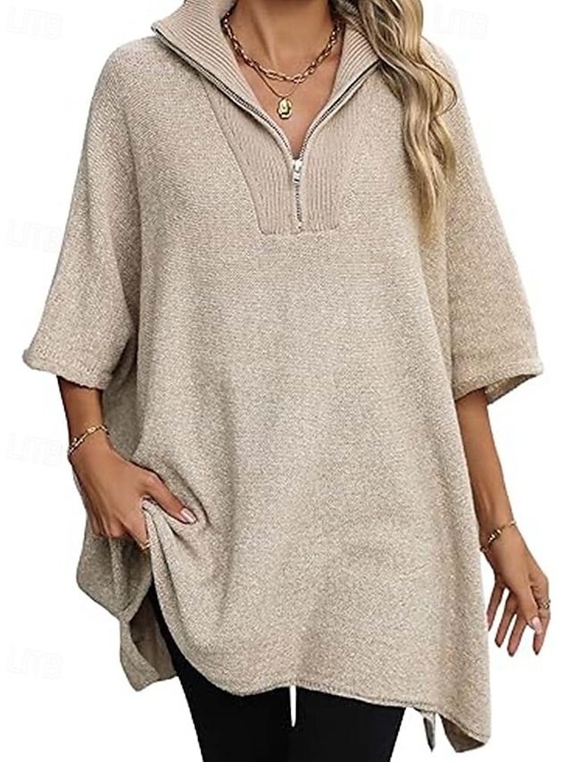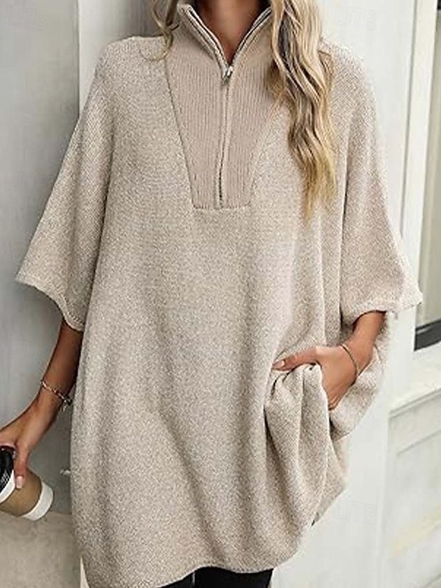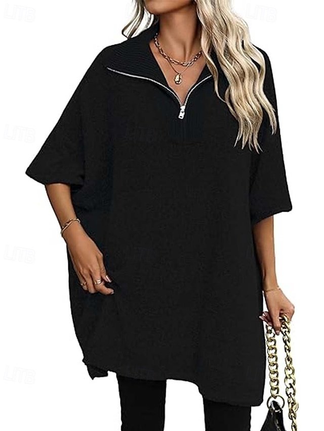 Discover timeless elegance with our Casual Loose Solid Deep V Neck Half Sleeve Sweater. Perfect for autumn and winter. Shop now for sophisticated style.