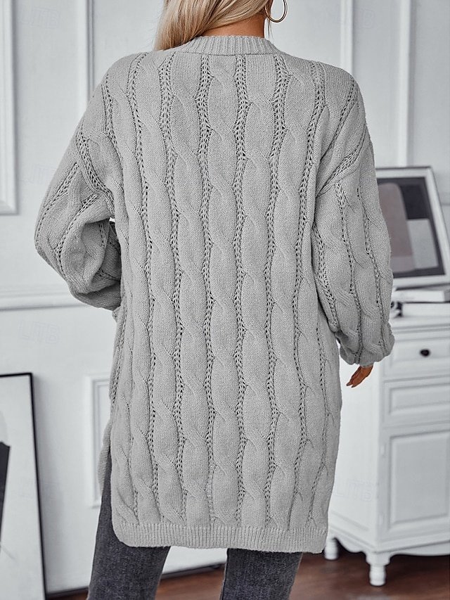 Shop our chic Casual Loose Solid Open Front Cardigan, perfect for autumn and winter. Luxuriously comfy with long sleeves and a textured finish.
