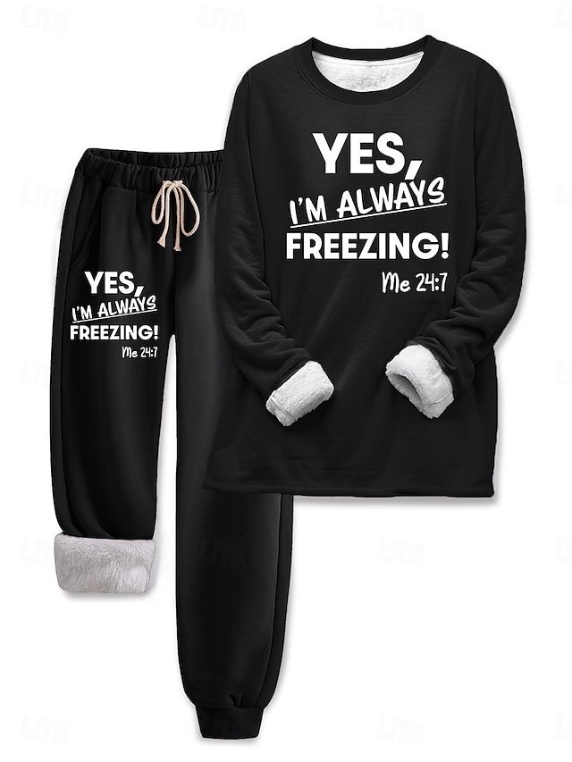 Embrace unparalleled comfort and style with our luxurious Casual Loose Solid Text Print Round Neck Long Sleeve Loungewear Set, designed to elevate your home wear to new heights of elegance. This exquisite two-piece ensemble is perfect for those who cherish both comfort and sophistication in their everyday wardrobe.