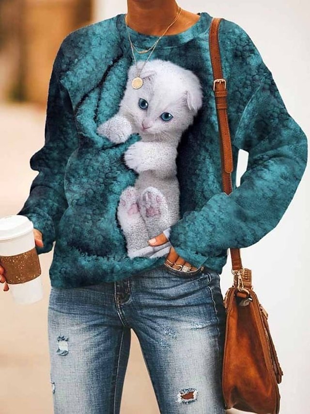 Discover this casual cat print sweatshirt. Perfect blend of comfort and style with breathable, soft fabric. Ideal for fall & winter days.