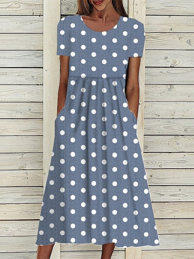 Casual Midi Floral Polka Dot Crew Neck Short Sleeve Dress
