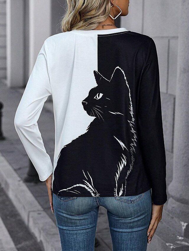 Embrace your playful side with our Casual Regular Cat Print Tops. Perfect for a day out or a relaxed weekend, this piece adds a touch of whimsy to any ensemble. The classic black hue is complemented by an adorable cat motif, making it a must-have for every animal lover’s wardrobe.
