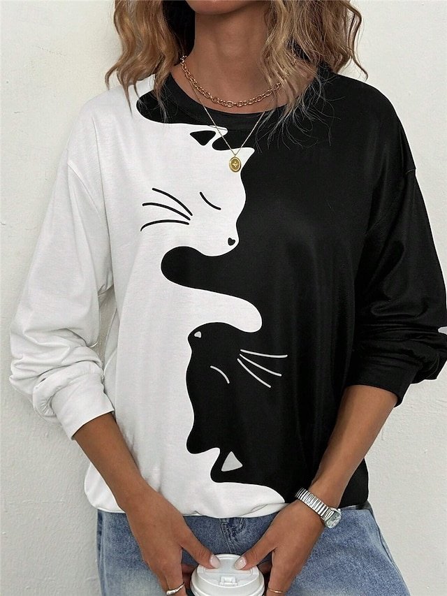 Indulge in the allure of effortless style with our Casual Regular Colour Block Cat Print Top. Perfect for those sun-kissed summer days, this top seamlessly blends playful charm with chic sophistication.