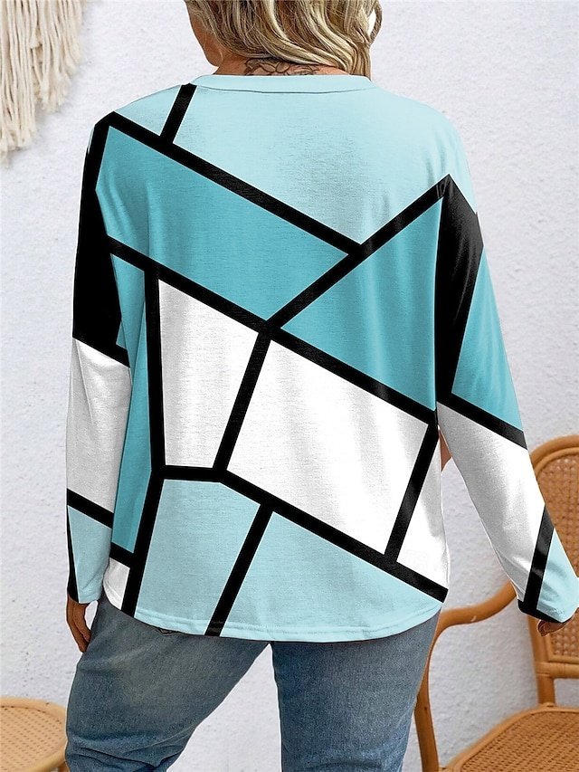 Discover our chic casual colour block top with a crew neck and long sleeves, perfect for a stylish spring and autumn look.