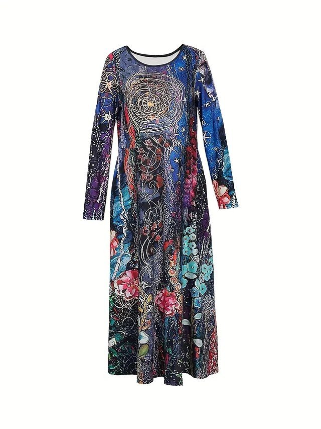 Casual Regular Fit Floral Crew Neck Long Sleeve Midi Dress