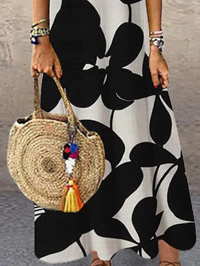Step into effortless elegance with our stunning maxi dress, a perfect blend of casual charm and sophisticated style. Ideal for summer vacations or the most intimate garden parties, this dress embodies timeless chic with its graceful floral print and classic black hue.