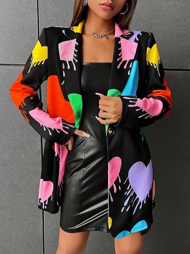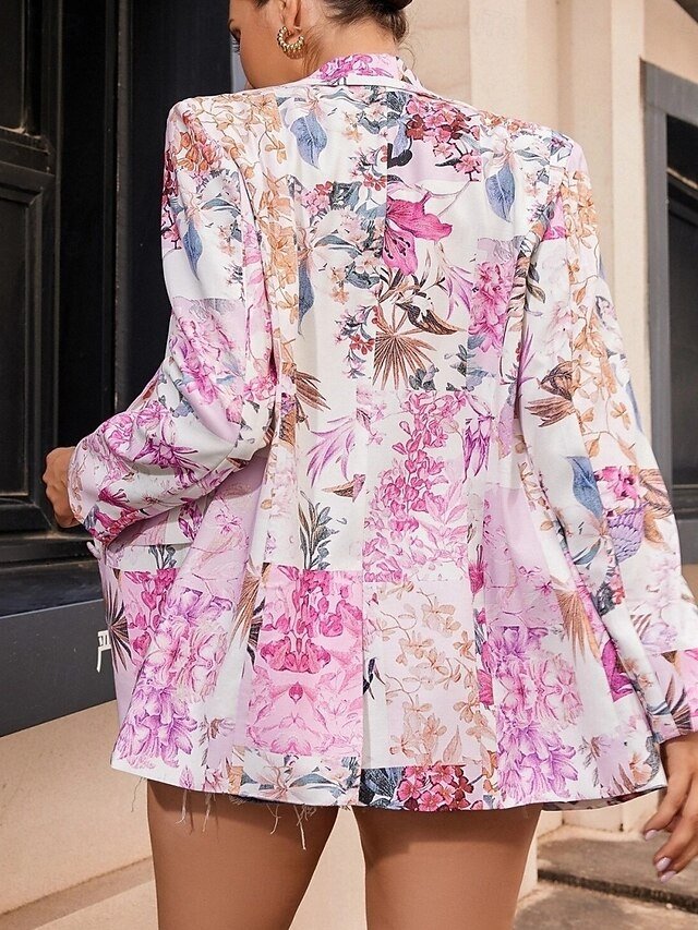 Casual Regular Fit Floral Notch Lapel Long Sleeve Blazer