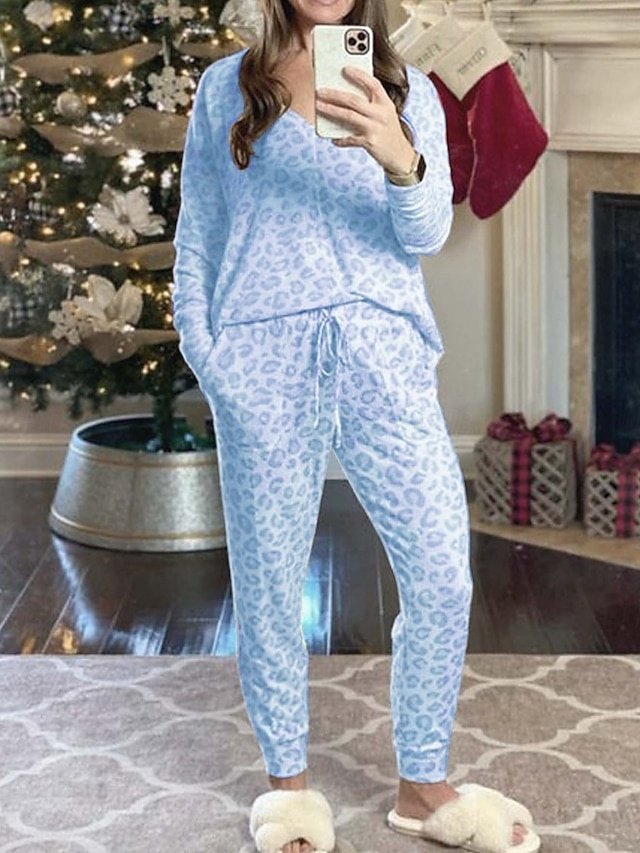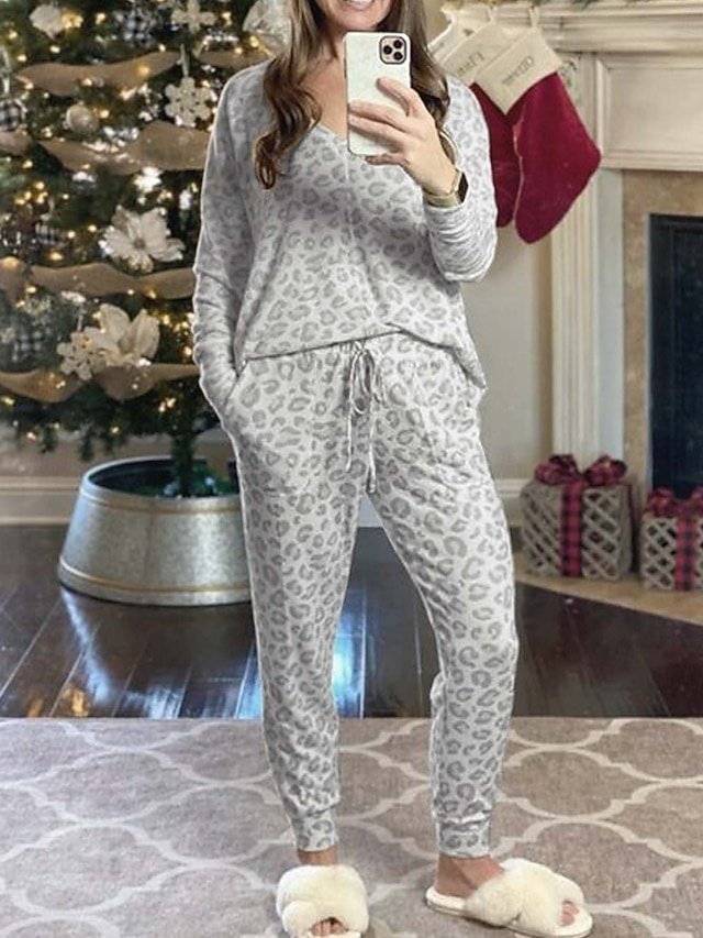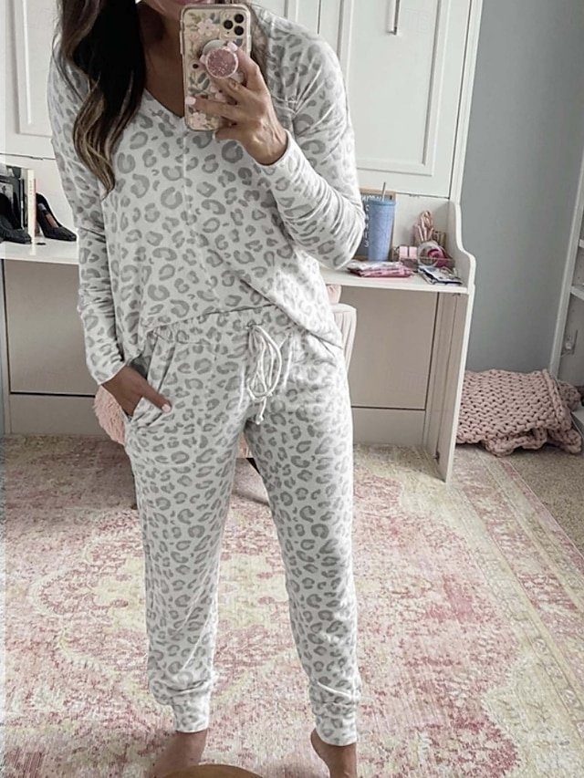 Indulge in the ultimate comfort with this chic pajama set, perfect for those who appreciate a touch of luxury in their loungewear. Embrace the stylish leopard print, available in a range of elegant hues, as you unwind in complete elegance from spring through to autumn.