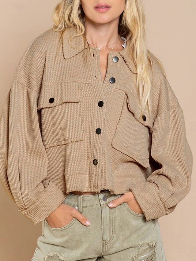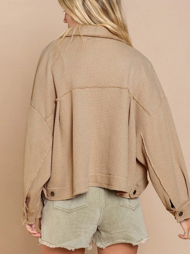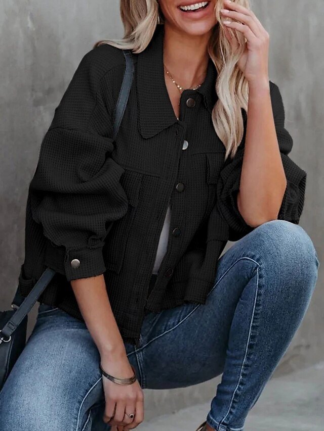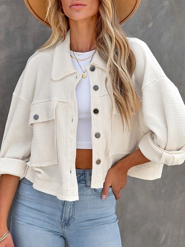 Casual Regular Fit Plain Turndown Long Sleeve Short Jacket