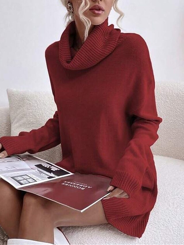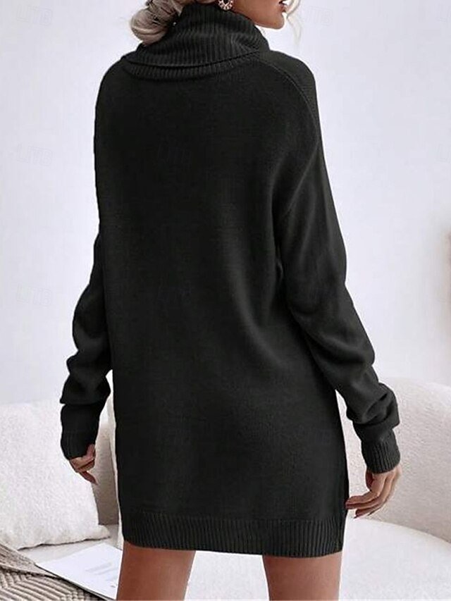 Embrace the essence of chic sophistication with our Casual Regular Fit Pure Colour Turtleneck Long Sweater Dress. Perfect for those serene autumn strolls or a stylish winter weekend getaway, this garment combines comfort with timeless elegance. Feel the gentle embrace of its sumptuous knit as it cocoons you in warmth and style.