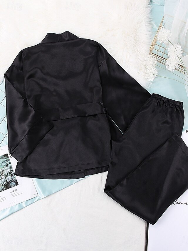 Discover ultimate home comfort with our elegant pure colour V neck pajama set. Available in black, blue, and green. Ideal for spring through autumn.