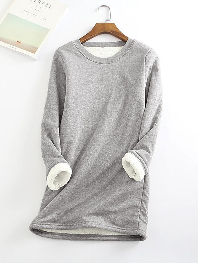 Casual Regular Fit Sherpa Fleece Lined Crew Neck Long Sleeve Mini Dress