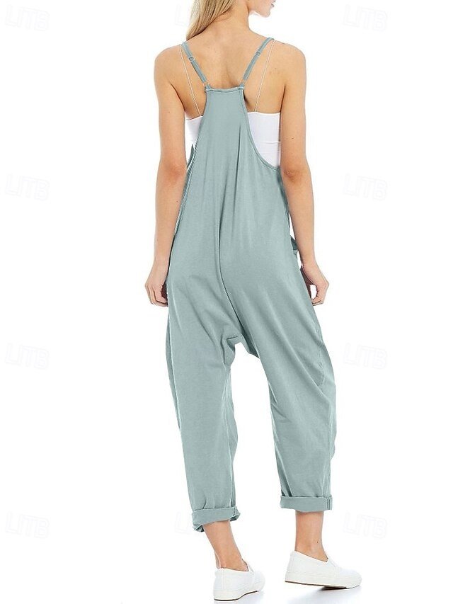 Discover elegance with our casual solid V-neck sleeveless jumpsuit. Available in black, light green, and army green for chic summer style.