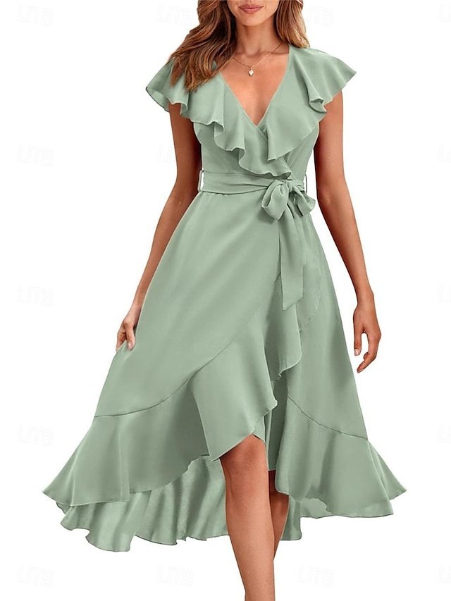 Embrace elegance and versatility with our exquisite Casual Regular Fit V Neck Short Sleeve Midi Chiffon Dress. Whether attending a cocktail party, a wedding, or simply enjoying a leisurely holiday, this dress is your perfect companion, exuding sophistication and charm in every setting.