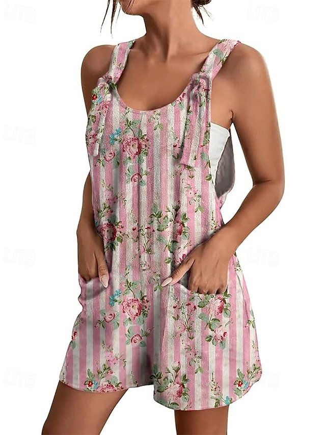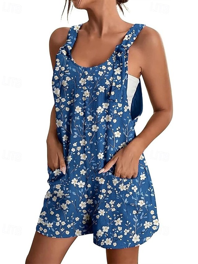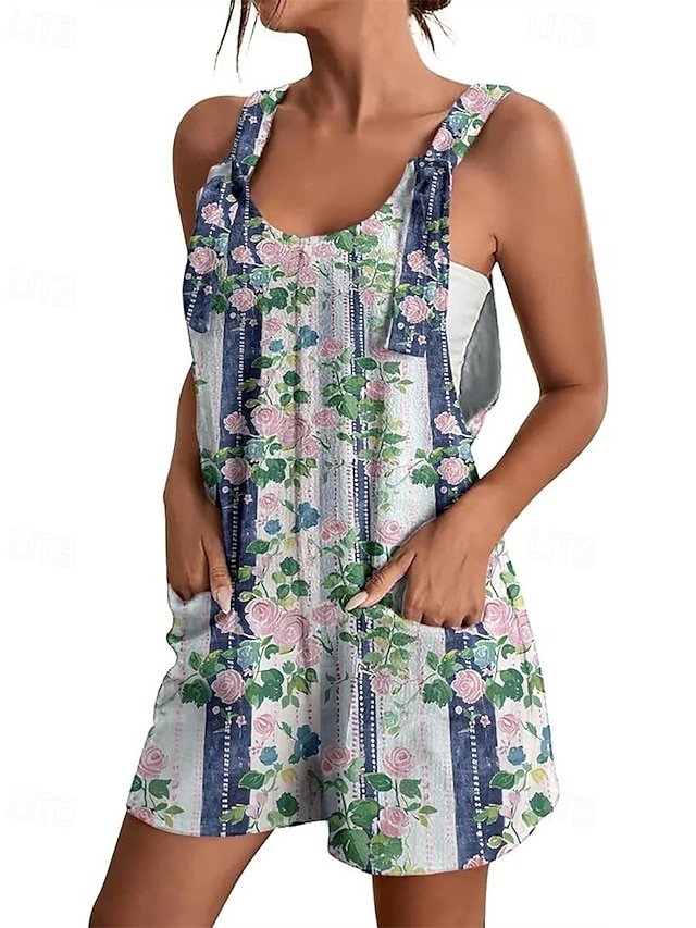 Step into the epitome of effortless style with our Casual Regular Floral Crew Neck Sleeveless Baggy Shorts Jumpsuit. This elegant piece is your gateway to street style sophistication, perfect for those seeking comfort without compromising on fashion.