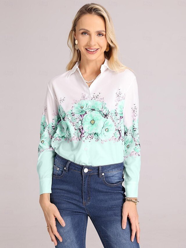 Discover luxury in our casual floral blouse with long sleeves, ideal for daily wear or holidays. Available in blue, green, and beige.