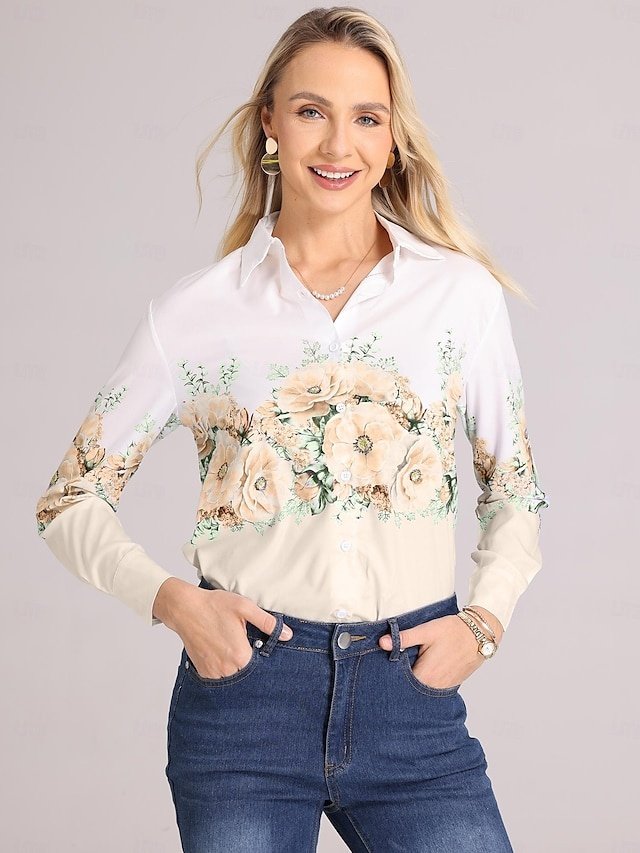 Step into the enchanting world of effortless elegance with our exquisite blouse, a perfect companion for both your daily endeavours and holiday adventures. This blouse melds timeless floral patterns with a classic shirt collar, crafting a piece that exudes sophistication and charm.