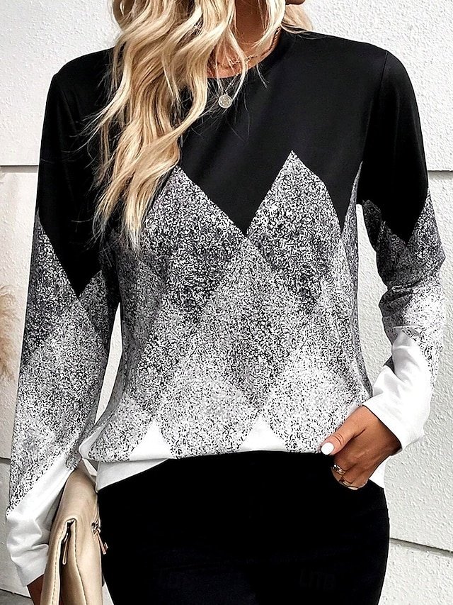 Discover the elegant Casual Regular Geometric Crew Neck Long Sleeve Tops. Perfect for daily wear in spring and fall. Shop now for timeless style!