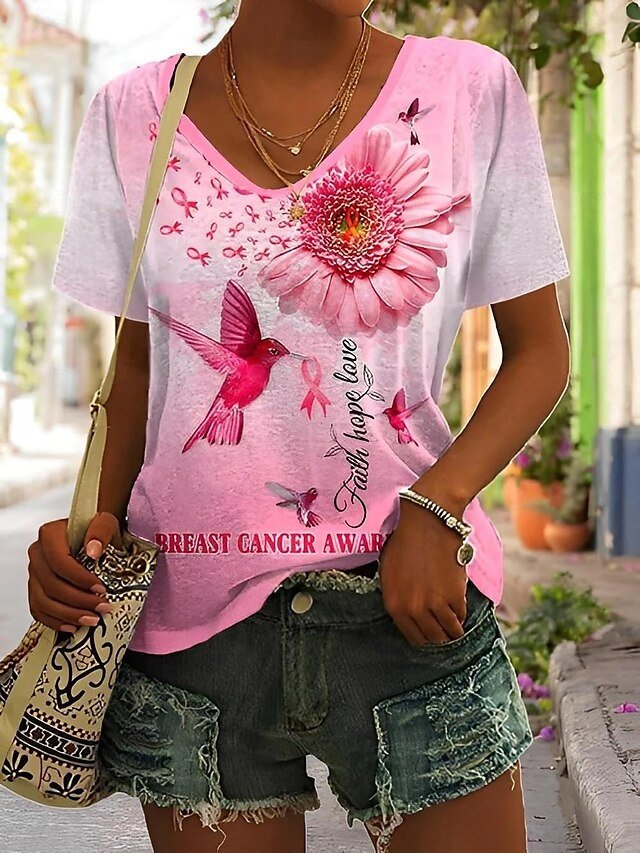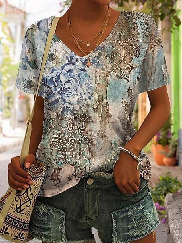 Casual Regular Neon Abstract V Neck Short Sleeve Top