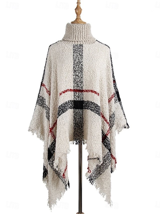 Discover elegant comfort with our Casual Plaid Turtleneck Shrug. Perfect for fall/winter, this knit piece is a timeless wardrobe staple.