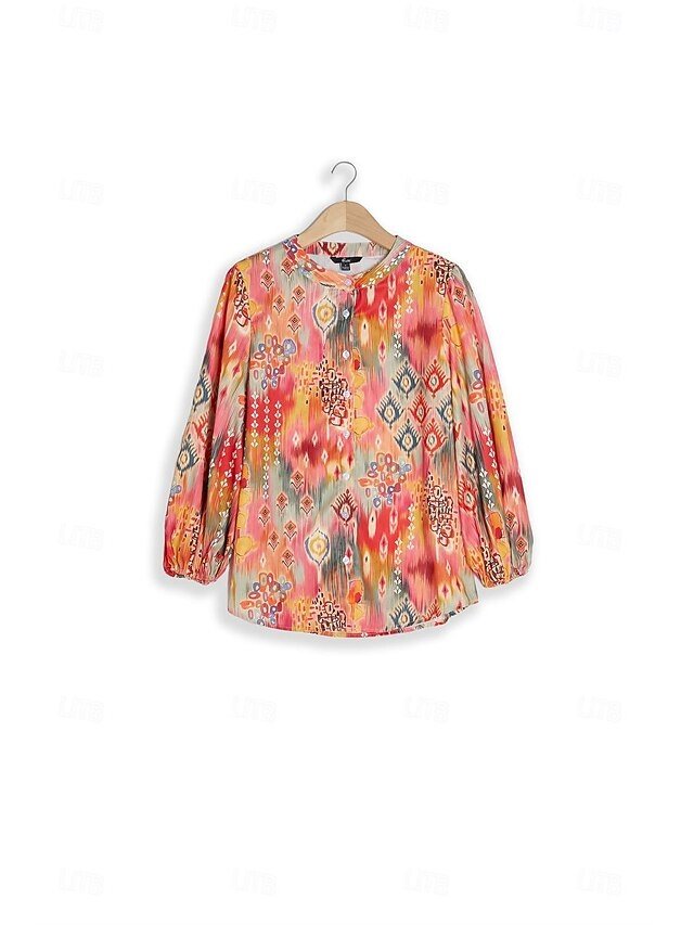 Discover elegance with our casual print button down long sleeve shirt in pink, blue, and green. Perfect for chic Spring and Fall styles.